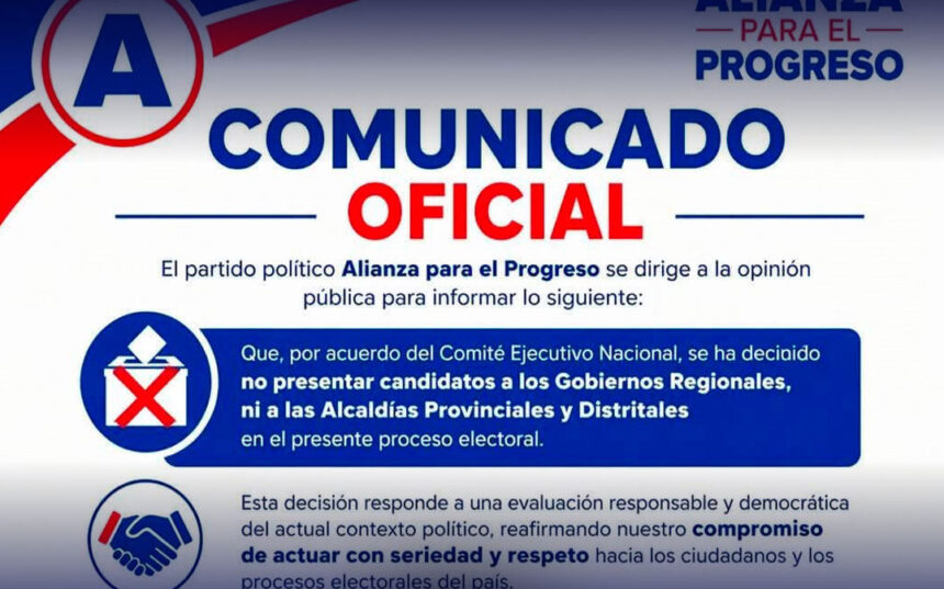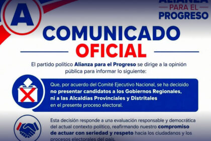 Un supuesto “comunicado oficial” atribuido a Alianza Para El Progreso - APP, en el que se afirma que el partido no presentará candidatos en las próximas elecciones regionales y municipales,…