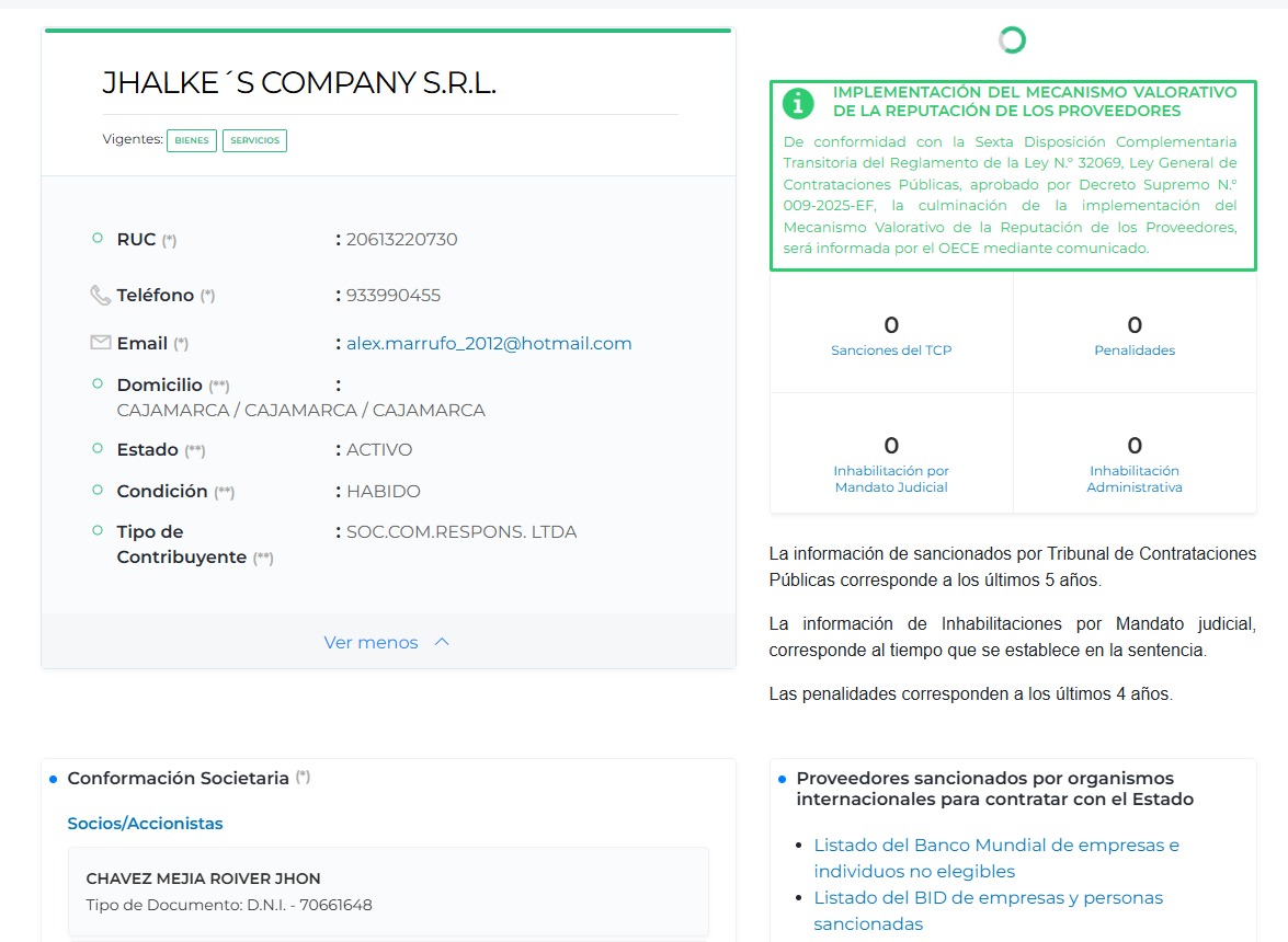 - Cómo la empresa JHALKE’S COMPANY S.R.L. con RUC 20613220730 recién creada en mayo de 2025 contrato por de S/ 40 000 para la obra CONSTRUCCION E IMPLEMENTACION DEL HOSPITAL II – I – DISTRITO DE CAJABAMBA – CAJABAMBA – CAJAMARCA.