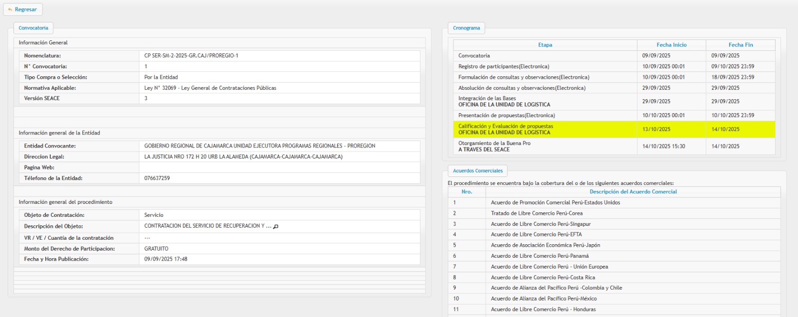 El 28 de agosto de 2025, PROREGIÓN Cajamarca emitió la Orden de Servicio N.º 245, sustentada en la Certificación Presupuestal N.º 000396, para la contratación de “servicios legales especializados en procesos administrativos”.