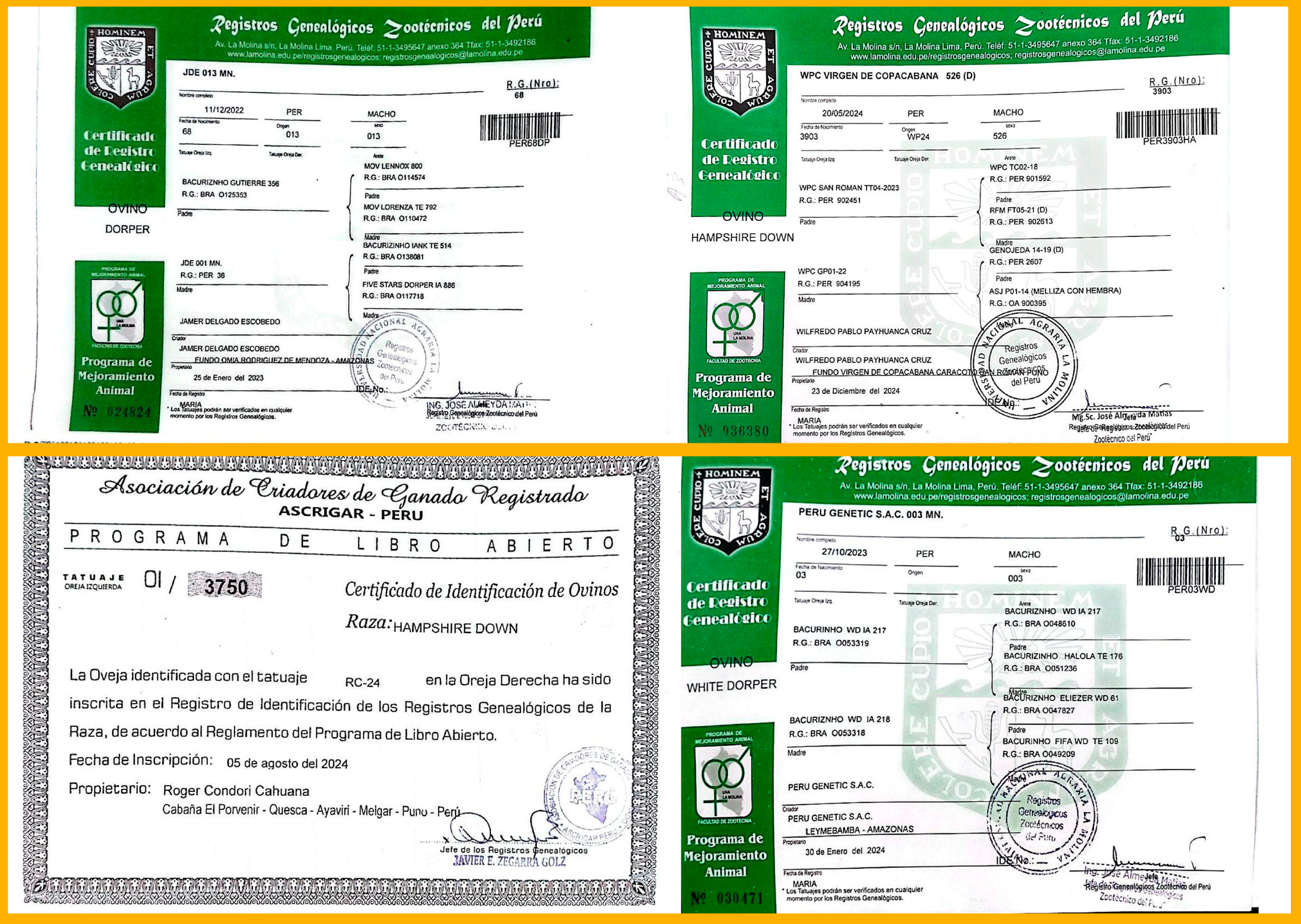 Los documentos técnicos que adjuntamos, descargados del portal del SEACE, certificados y registros genealógicos, acreditan que los ovinos adquiridos por la Gerencia Subregional de Cutervo, corresponden a razas definidas como Hampshire Down y Dorper, con respaldo de pedigree y control reproductivo. Los documentos validan la calidad genética de los ejemplares, caracterizados por ser reproductores seleccionados con trazabilidad, lo que justifica la diferenciación de precios y respalda técnicamente la compra realizada.