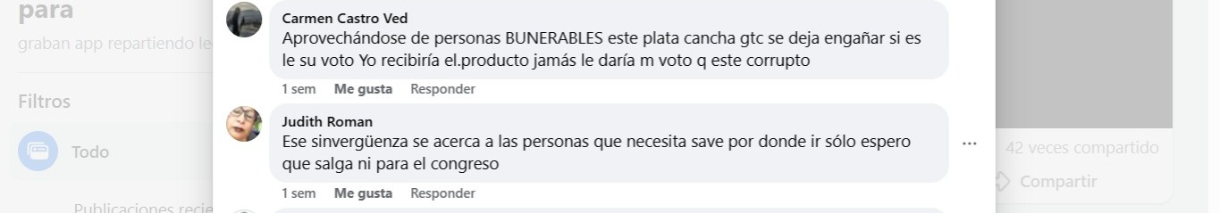 Durante la grabación de los videos se puede escuchar claramente a una de las persona lanzar un comentario fuerte contra el líder de APP. “Este delincuente, mira cómo regala a la gente… está regalando leche”., mientras que en otro video, la persona que graba afirma, “acá vemos un carro de la familia Acuña… miren qué están regalando. Leche. Bastante leche están regalando”.