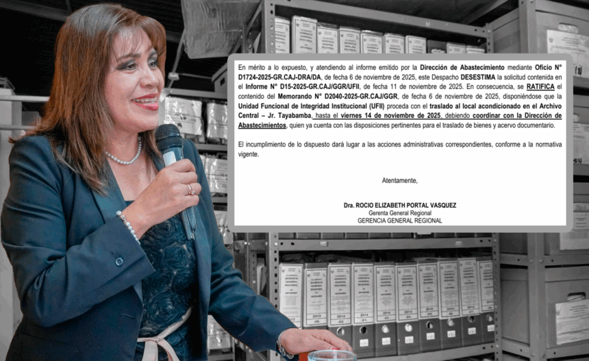 Lejos de abrir un espacio de análisis, la gerencia reaccionó con dureza. El 13 de noviembre, la Dra. Rocío Portal Vásquez firmó el Memorando N.º D2079-2025-GR.CAJ/GGR, donde rechazó de plano el informe técnico elaborado por la unidad especializada. En el documento, Portal calificó las observaciones como “meras conjeturas”, restó validez a los riesgos descritos y afirmó que el traslado era un simple acto de administración interna, por lo que no era sujeto de recurso. Con esa frase convertía el fondo del reclamo en un asunto cerrado.