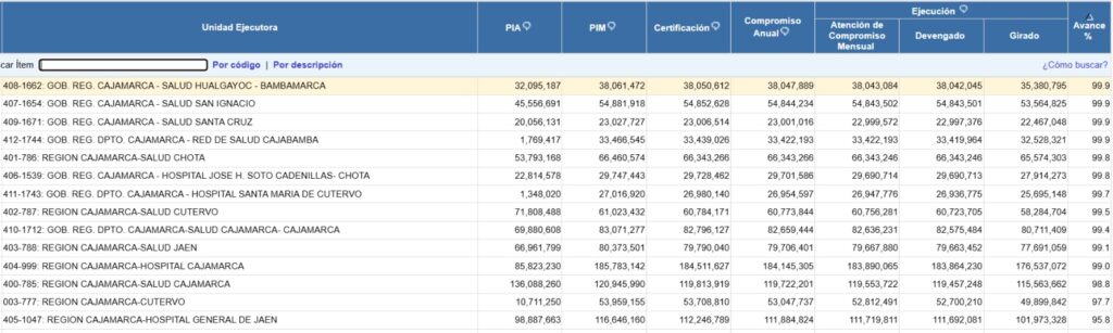 De esta manera, la RIS Hualgayoc-Bambamarca, dirigida por el Dr. Juan Carlos Gayoso Saldaña, aparece con un avance de gasto del 99.949 %, más de 36 millones de soles, a toda fuente de financiamiento, lo cual continúa siendo una ejecución histórica del presupuesto para toda la región Cajamarca.
